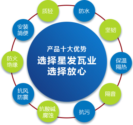 公司主要產(chǎn)品有《星發(fā)牌》合成樹脂瓦、APVC防腐耐候復(fù)合瓦、APVC發(fā)泡隔熱瓦、PVC半透明瓦、PVC防腐隔熱瓦、PVC防腐瓦、PVC防腐平板、PVC條紋板和ASA/PVC超耐候復(fù)合瓦等產(chǎn)品。產(chǎn)品一經(jīng)推出,已被廣泛應(yīng)用于國內(nèi)各類平改坡項(xiàng)目和大型工業(yè)項(xiàng)目,遠(yuǎn)銷歐洲、亞洲、美洲和非洲等國外市場(chǎng),還獲選為廣州亞運(yùn)會(huì)、深圳大運(yùn)會(huì)、四川災(zāi)后重建等工程項(xiàng)目的應(yīng)用產(chǎn)品。公司在不斷創(chuàng)新和改革的基礎(chǔ)上,力求以更好的產(chǎn)品、優(yōu)良的服務(wù),用心、專心服務(wù)好每一個(gè)客戶。